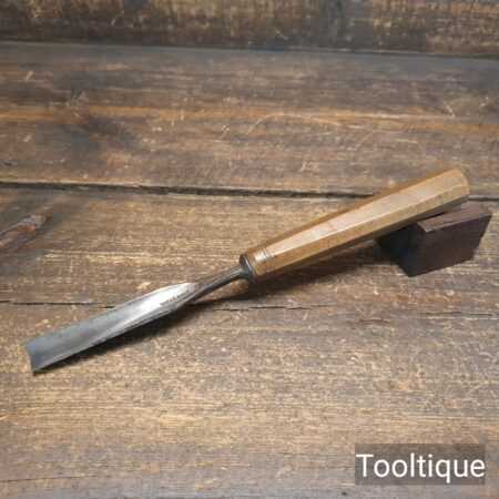 Scarce antique John Green ¹¹⁄₁₆” woodcarving gouge chisel with an octagonal beechwood handle in good used condition, fully refurbished sharpened and honed ready for use. Note: This dates to the late 18th century.