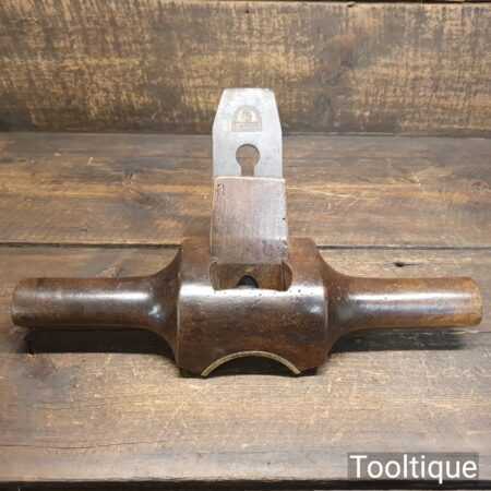 Scarce antique wheelwright’s beechwood and brass Jarvis plane in used condition. Note: this example has (Treated) worm holes in the body, Hence price