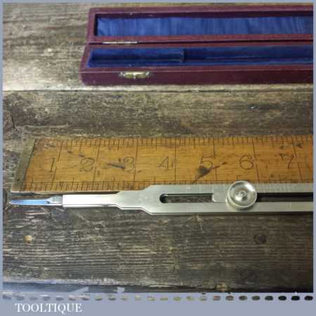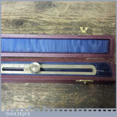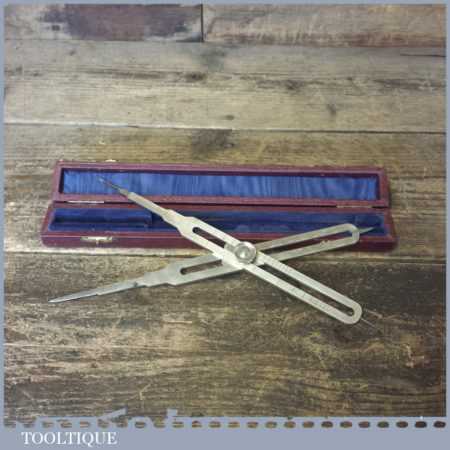 Scarce vintage pair of Ashworth of London brass proportional dividers stamped with crowsfoot broad arrow and dated 1954, in original case and in good used condition.