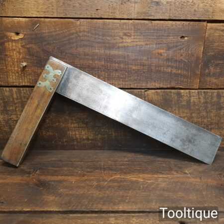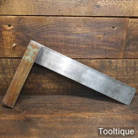 Scarce large vintage carpenters 15” mahogany and brass try square with an elaborate brass connection plate in good used condition.