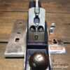 When refurbishing planes, we do not merely clean them to make them look good, they are restored to a level that ensures they are actually ‘in plane to 0.045mm’ sharpened, honed and all the components are thoroughly cleaned so that they move freely. Our planes are specifically reconditioned to satisfy professional tradesmen who will instantly know the difference between buying one of our planes over general other used ones.