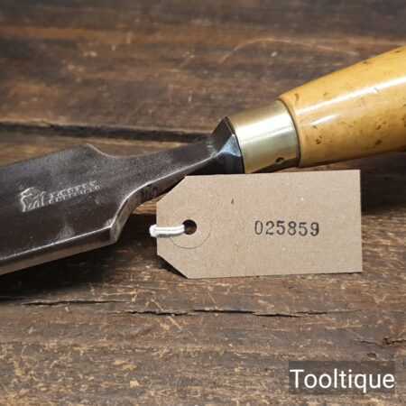 The chisel has been checked to ensure the tang is seated properly and the handle is solid and fit for use. All refurbished chisels are water cooled during the sharpening & flattening process to ensure the tempering is not affected.