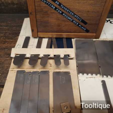 Scarce vintage 26 No: tungsten steel special cutters for No: 405 combination planes, in wooden box and good used condition