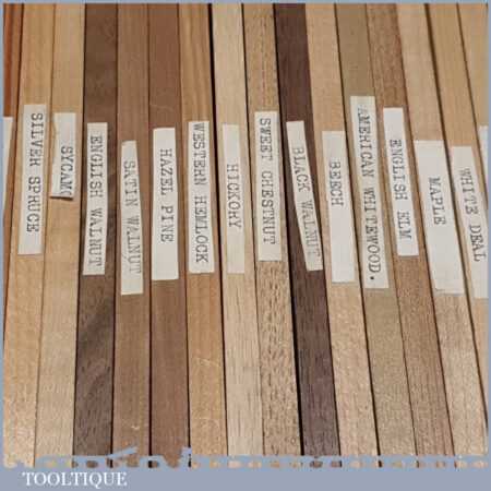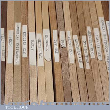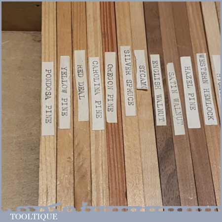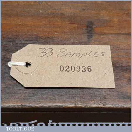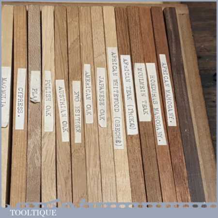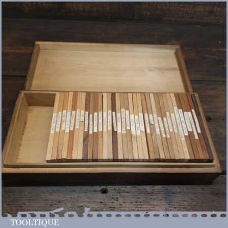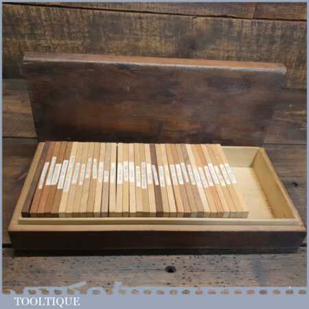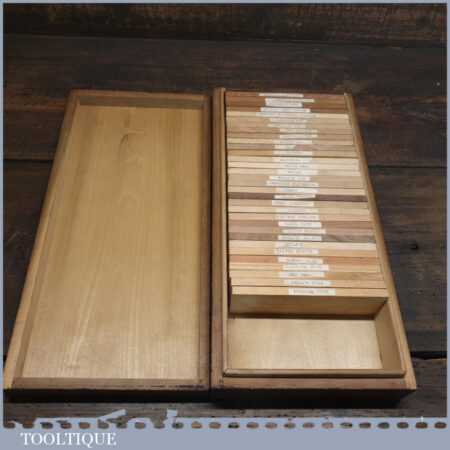 Scarce vintage boxed part set of 33 No: salesman’s wood specimen samples in good used condition.