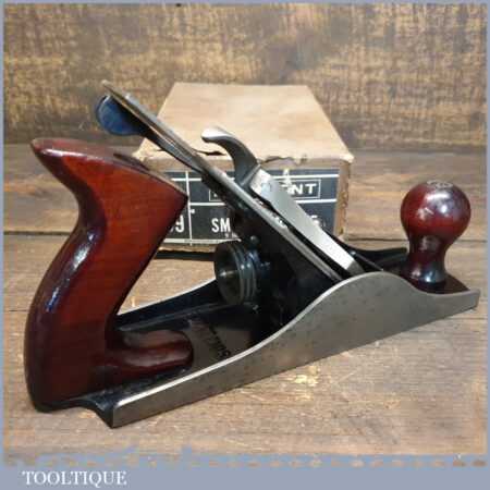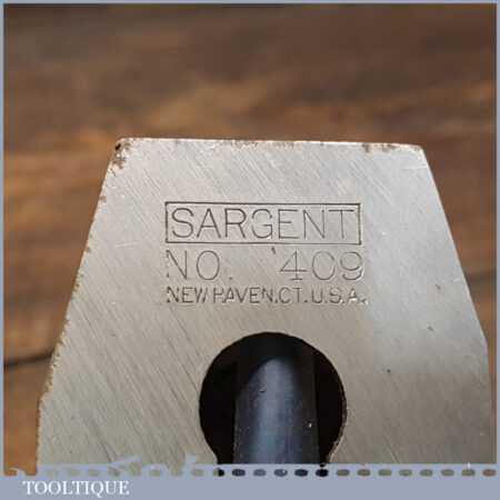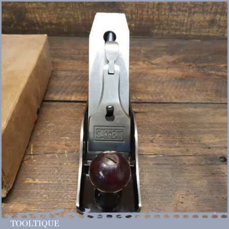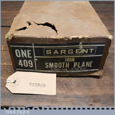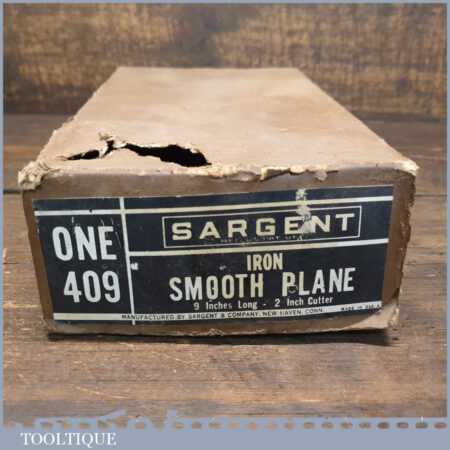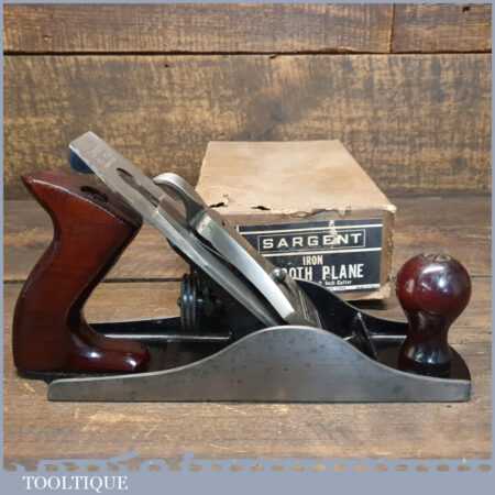 Scarce Vintage boxed Sargent & Co. USA No: 409 smoothing plane with original iron and rosewood handles (produced between 1943-1950), in very good original condition. It’s certainly the best Sargent plane we have had here to date. The body has a few marks and could have been cleaned but we have left this to show how good it was in its natural state.