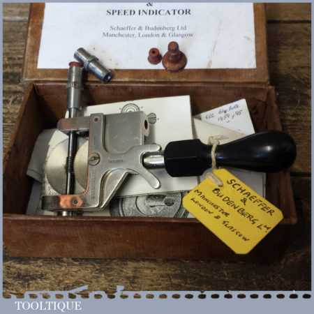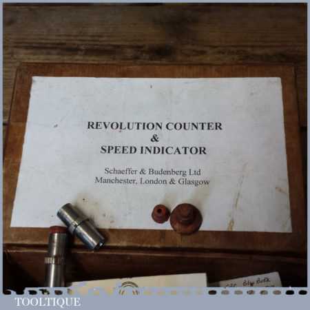 Scarce vintage boxed Schaeffer & Budenberg revolution counter and speed indicator in good used condition.