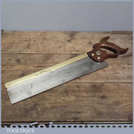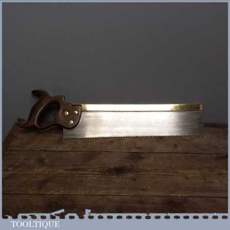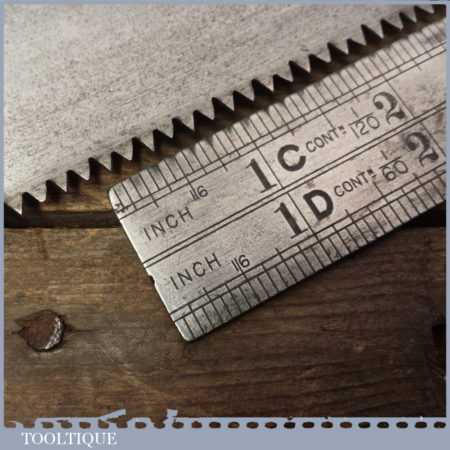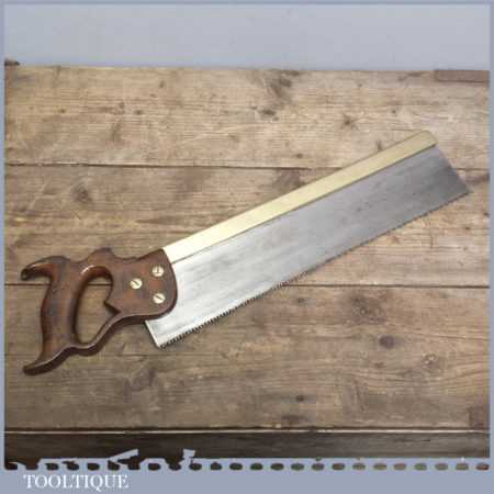 Scarce Vintage Disston 16” Brass Back Tenon Saw in good condition, the saw seems sharp enough but as ever I’m sure a seasoned woodworker could improve it, it’s also straight. There are only 7 teeth per inch so is suitable to use for course work but where precise cutting is important. For those unfamiliar with these saws: The Disston saw from Philadelphia is often regarded as the best saw ever produced.