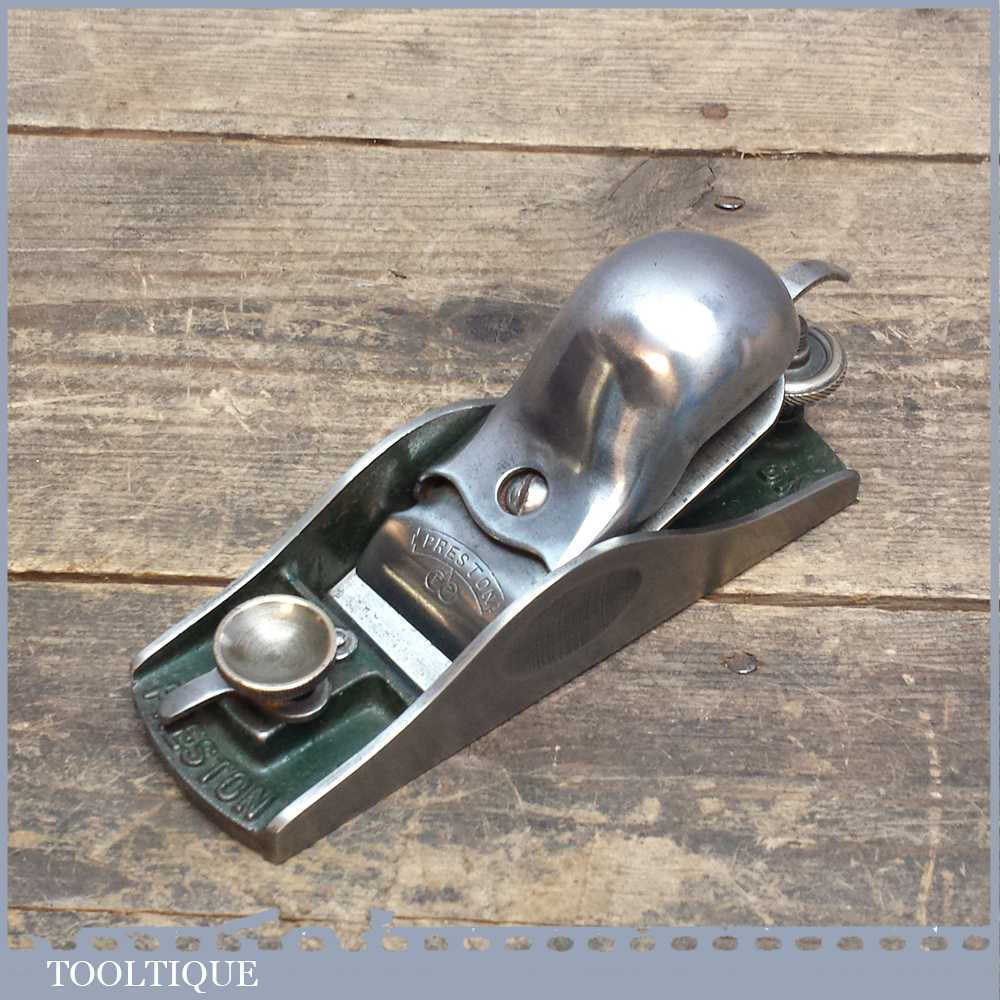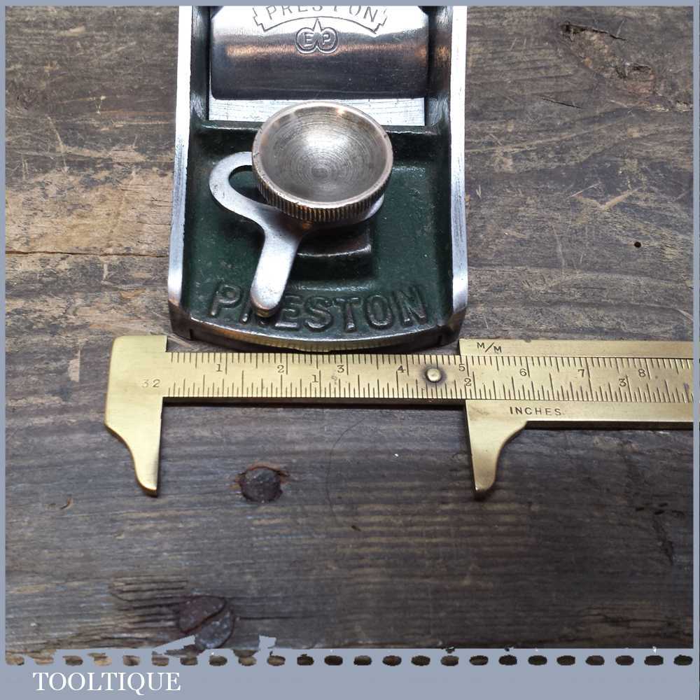 Scarce vintage Edward Preston No: 118 adjustable throat block plane in very good used condition. These don’t come up very often and this example is very good one indeed.