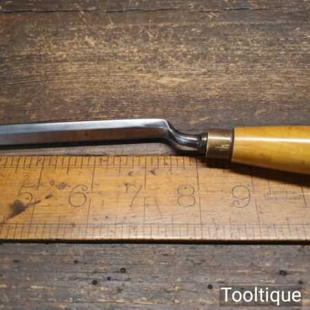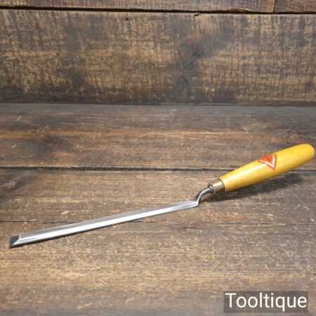 Scarce vintage Henry Taylor Diamic ½” wide cranked bevel edge paring chisel with beechwood handle in good used condition, fully refurbished sharpened and honed ready for use. These are like gold dust to find in good condition like this.