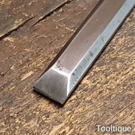 The chisel has been checked to ensure the tang is seated properly and the handle is solid and fit for use. All refurbished chisels are water cooled during the sharpening & flattening process to ensure the tempering is not affected