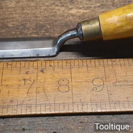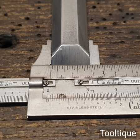 The chisel has been checked to ensure the tang is seated properly and the handle is solid and fit for use. All refurbished chisels are water cooled during the sharpening & flattening process to ensure the tempering is not affected