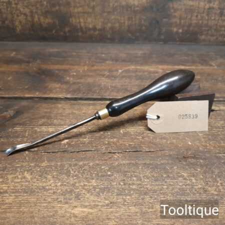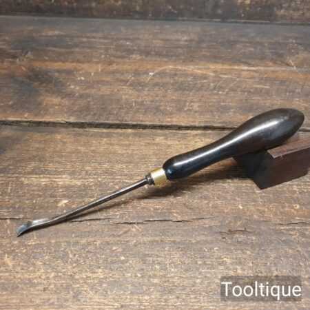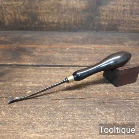 Scarce vintage Herring Bros. woodcarving reverse spoon gouge chisel with ebony handle in good used condition, fully refurbished sharpened and honed ready for use.