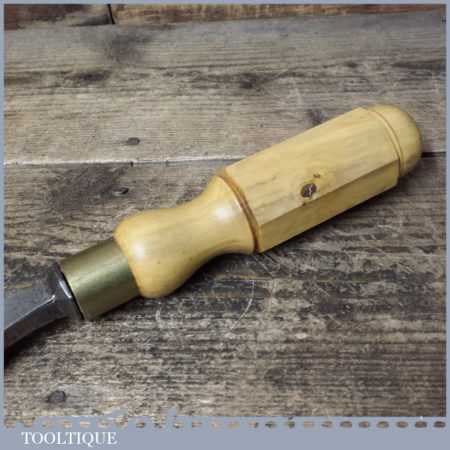 The chisel has been checked to ensure the tang is seated properly and the handle is solid and fit for use. All refurbished chisels are water cooled during the sharpening process to ensure the tempering is not affected. These old cast steel chisels are hand forged and far superior in quality because of the high carbon steel that was used which produces a keener edge, this was also generally used throughout the full length