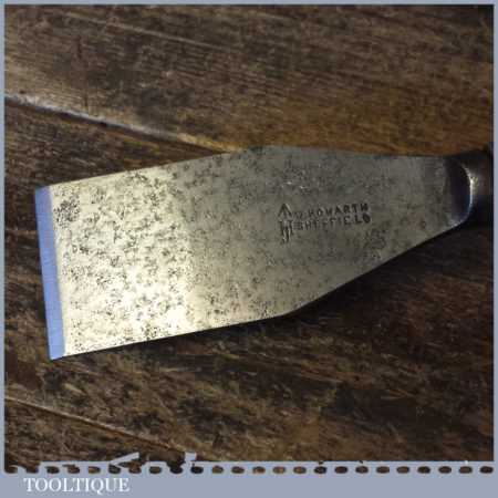 Scarce vintage James Howarth carpenter’s 1 ½” sash pocket chisel with beechwood handle in good used condition, fully refurbished sharpened and honed ready for use. Note: little crack on handle where it was re-handled in the past.