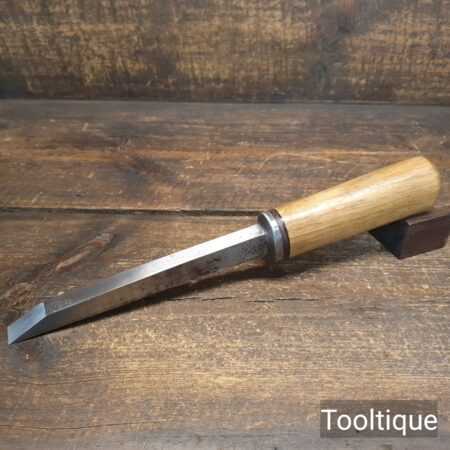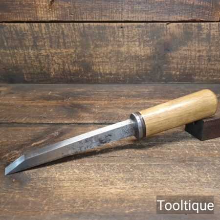 Scarce vintage Mitchell Wreaks & Co. ¹⁹⁄₃₂” cast steel mortice chisel with a beechwood handle in good used condition, fully refurbished sharpened and honed ready for use.