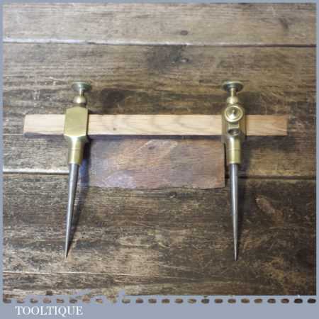 Scarce vintage pair of W. Marples & Sons shamrock 5” brass trammel points in good used condition.