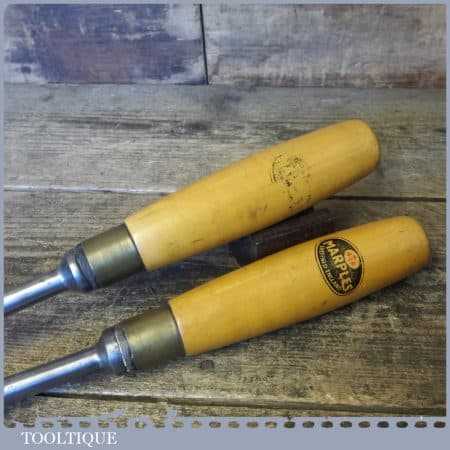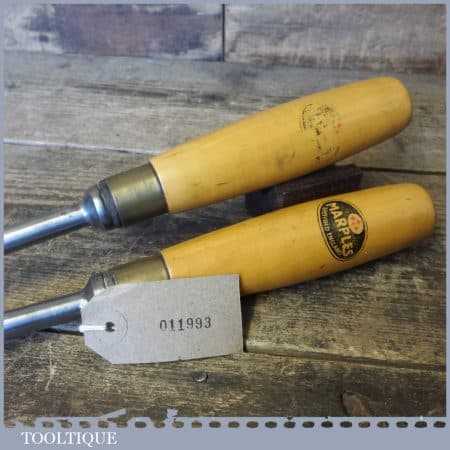Scarce vintage pair of W. Marples & Sons 16 ¾” draw bore pins with boxwood handles in excellent condition