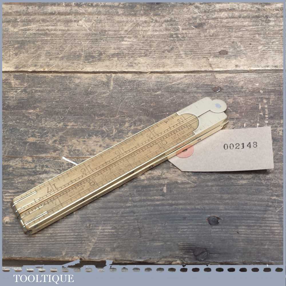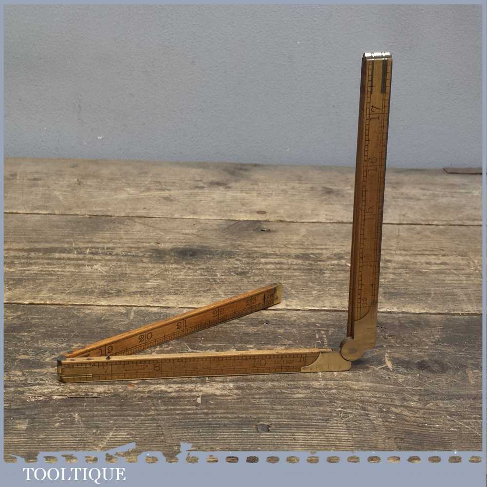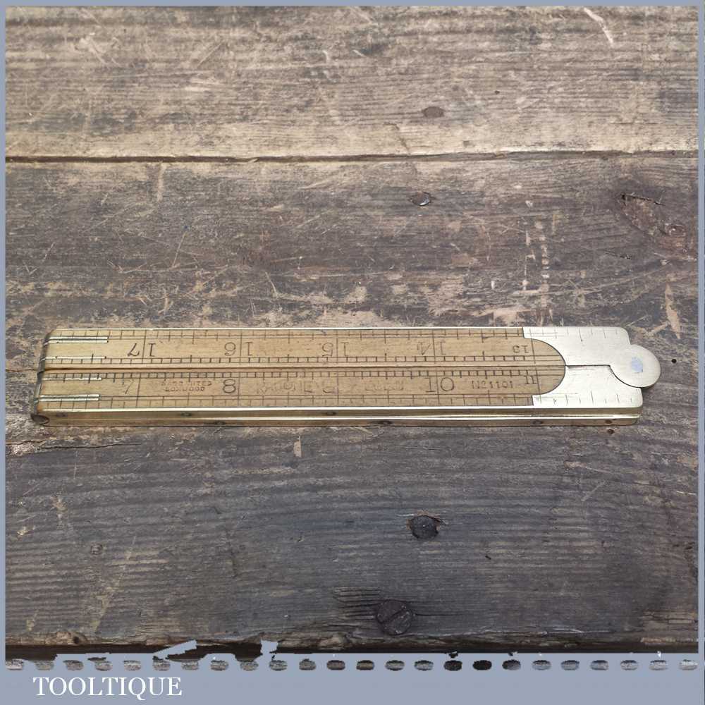 Scarce vintage Rabone Brass bound boxwood ruler No: 1101 in good used condition for its age.