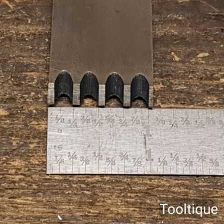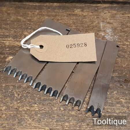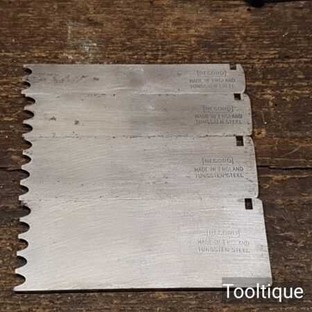 Scarce vintage Set of 4 Record Reeding cutters (1 ⁵⁄₁₆”, 1¹⁄₁₆”, 3/4″, ⁹⁄₁₆”) for 405 combination plane in good used condition. Unused condition.