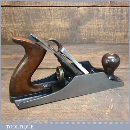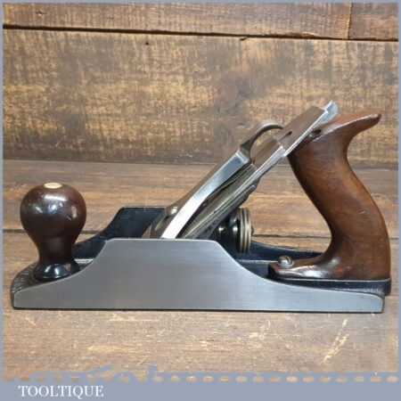 Scarce Vintage Stanley Bedrock USA No: 604 ½C wide bodied smoothing plane with corrugated sole and with original Stanley Sweetheart iron and rosewood handles, fully refurbished and in good used condition, ready to use.