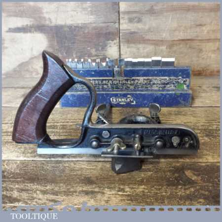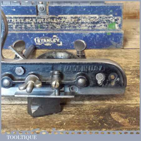 Scarce vintage Stanley USA No: 50 combination plough plane complete with 15 cutters, fully refurbished and ready for use. The plane is in good condition and all components move smoothly. This has a good percentage of its original black japanning. Note: We do not sharpen the irons.