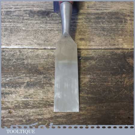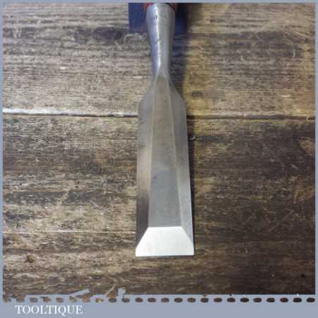 The chisel has been checked to ensure the tang is seated properly and the handle is solid and fit for use. All refurbished chisels are water cooled during the sharpening process to ensure the tempering is not affected. These old cast steel chisels are hand forged and far superior in quality because of the high carbon steel that was used which produces a keener edge, this was also generally used throughout the full length.