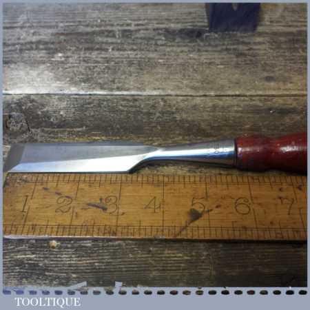 Scarce Vintage Stanley USA No: 750 carpenters socketed 1” bevel edge chisel with buffered mahogany handle in good used condition, fully refurbished sharpened and honed ready for use.
