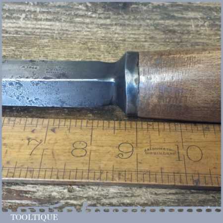 Scarce vintage W. Marples & Sons carpenter’s 3/4” laminated cast steel mortice chisel (stamped with crowsfoot broad arrow and dated 1944) with beechwood handle in good used condition, fully refurbished sharpened and honed ready for use. These wider sizes don’t come up for sale very often.