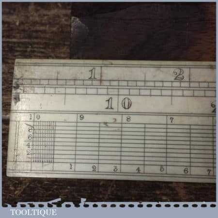 Scare antique imperial 6″ Gunter’s scale ruler with cupids bow end feature in good used condition.
