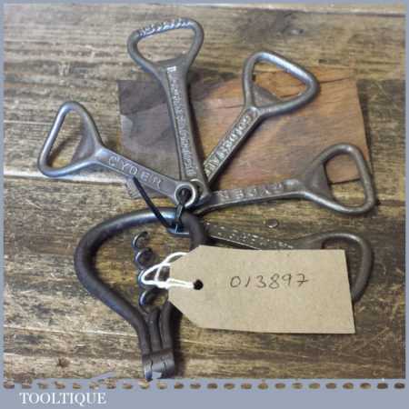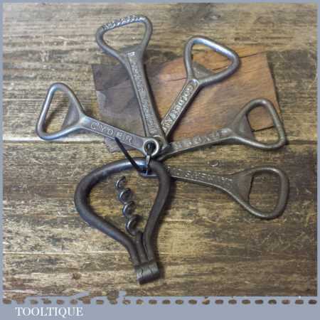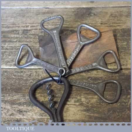 Selection of 5 No: vintage beer and cider bottle openers and 1 No: corkscrew in good used condition.