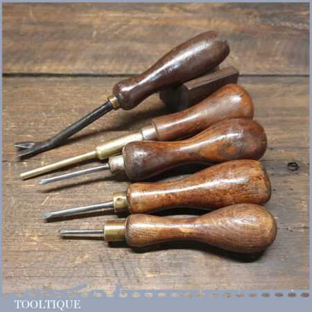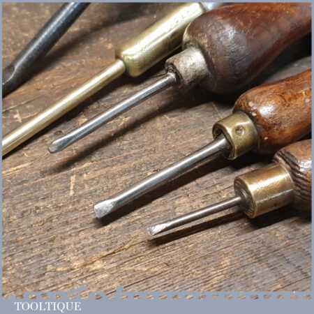 Selection of 5 No: vintage carpenter’s tools including push pin, tack lifter, bradawl, etc. in good used condition.