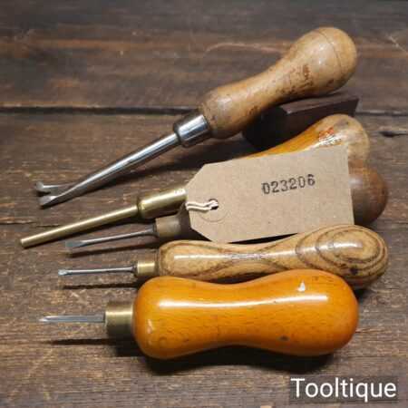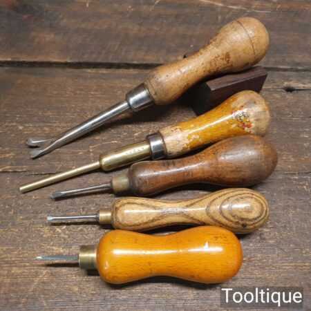 Selection of 5 No: vintage carpenter’s tools including push pin, tack lifter, bradawl, etc. in good used condition.