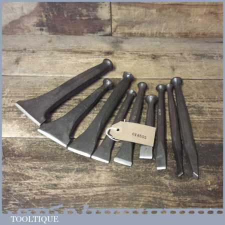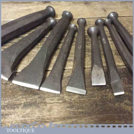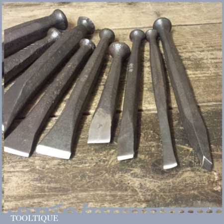 Old selection of 9 No: vintage stonemason’s carving chisels in good used condition and sharpened ready for use