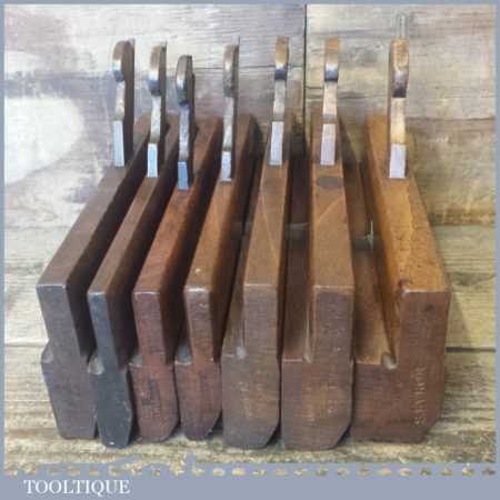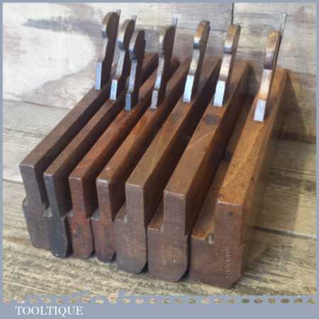 Selection of 7 No: vintage odd numbered hollow and round beechwood moulding planes in good used condition.