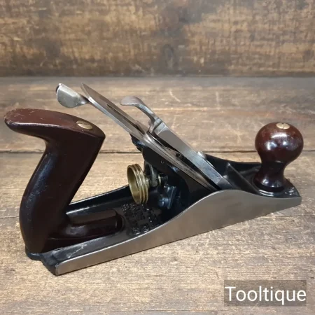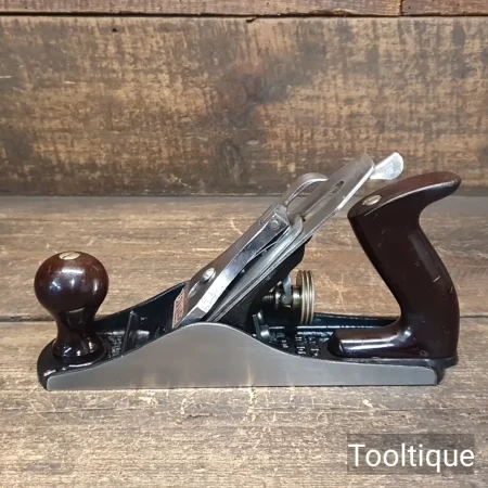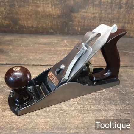 Semi Modern Stanley England No: 4 Smoothing Plane, fully refurbished ready for use and in good used condition. Note: 2” Iron, Plastic Handles. When refurbishing planes, we do not merely clean them to make them look good, they are restored to a level that ensures this plane is actually ‘in plane to within 0.02mm’ sharpened, honed and all the components are thoroughly cleaned so that they move freely. Our planes are specifically reconditioned to satisfy professional tradesmen who will instantly know the difference between buying one of our planes over general other used ones.