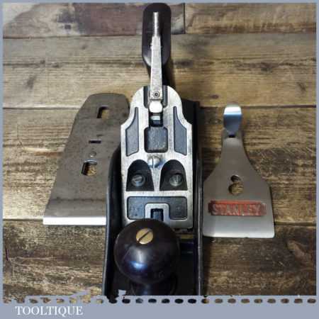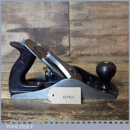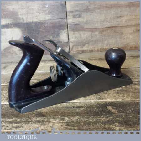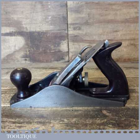 Semi Modern Stanley England No: 4 ½ wide bodied smoothing plane, fully refurbished ready to use and in good used condition. Pre-dates their current range where the throats are machine cut, this has plastic handles.