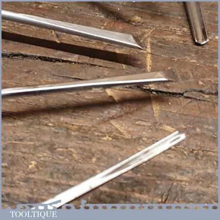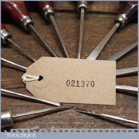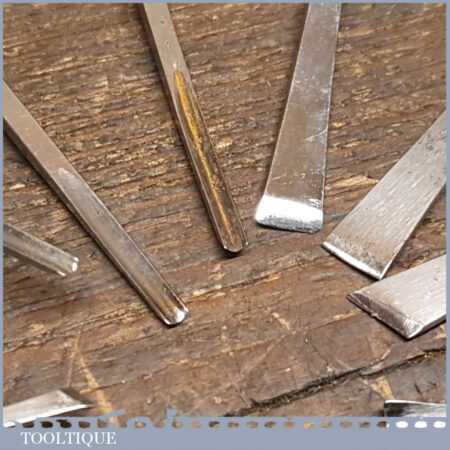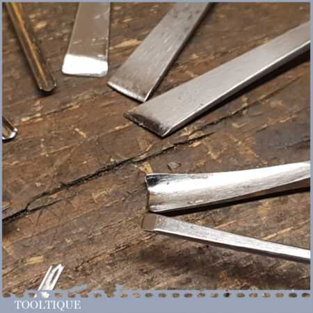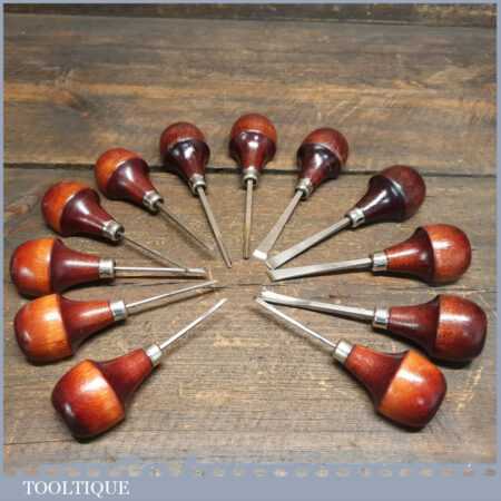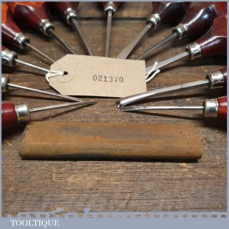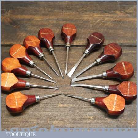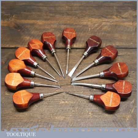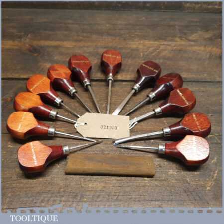 Set of 12 No: vintage Ramelson, USA palm carving chisels including slip stone in good used condition, fully refurbished sharpened and honed ready for use.