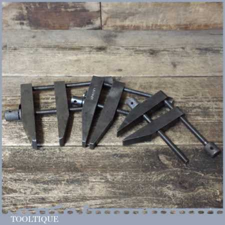 Set of 3 No: engineering tool maker’s clamps (one by Moore & Wright dated 1944) in good used condition.