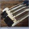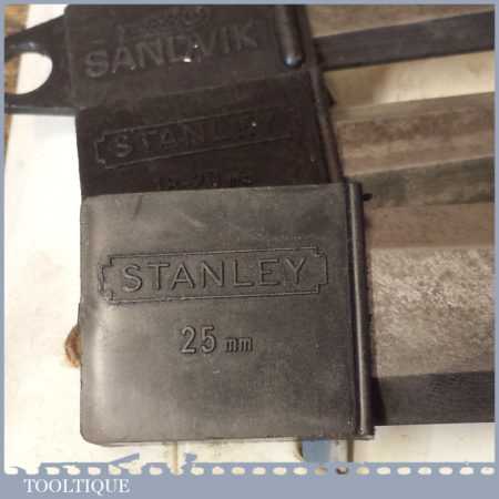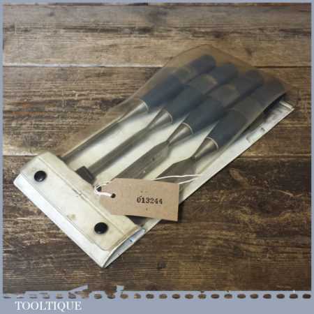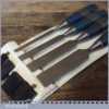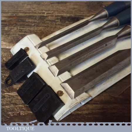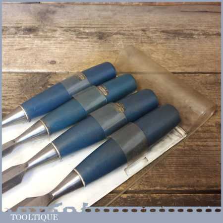 Set of 4 No: Stanley No: 5002 carpenter’s bevel edge chisels with plastic handles in good used condition, fully refurbished sharpened and honed ready for use.