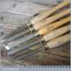 Set of 5 No: Marples vintage wood turning chisels with beechwood handles in good used condition.