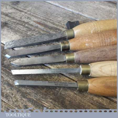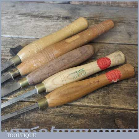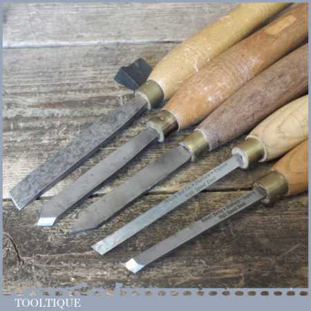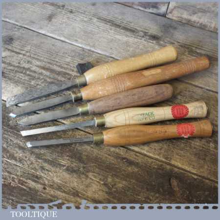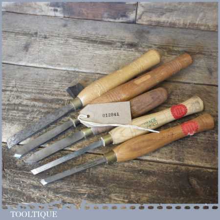 Set of 5 No: vintage wood turning chisels by assorted makers in good used condition.