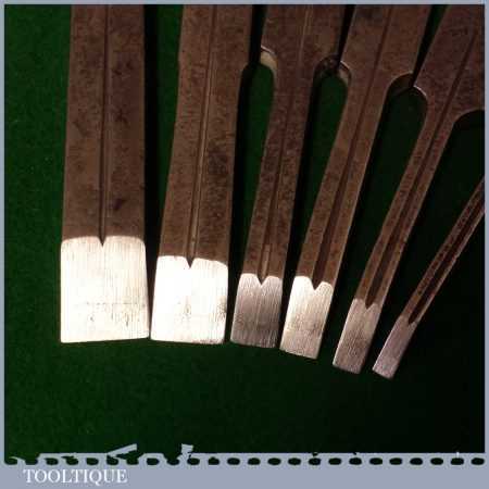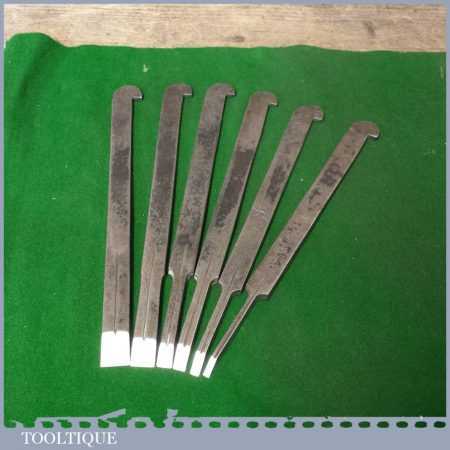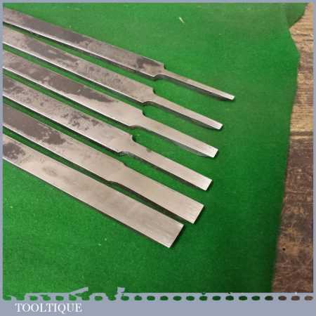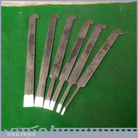 Set of 6 Vintage No: Continental plough plane irons marked Garantie Gussstahl (Guaranteed Cast Steel) in good used condition.