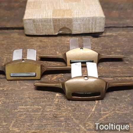 Set of 3 No: Aldon USA pattern makers miniature gunmetal spokeshaves (flat and curved) in good used condition