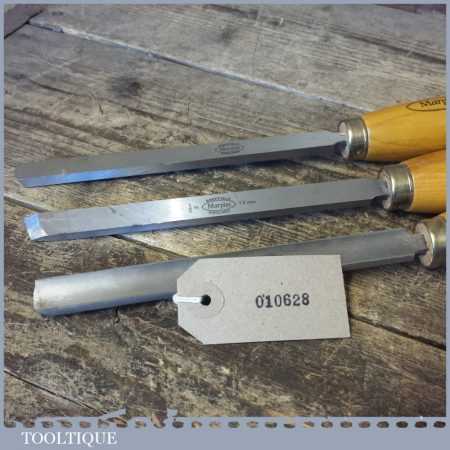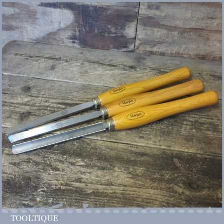 Set of 3 No: Marples vintage wood turning chisels with beechwood handles in good used condition, fully refurbished sharpened and honed ready for use.