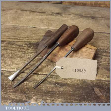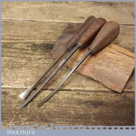 Set of 3 No: S.J. Addis vintage wood carving chisels with mahogany handles, in good used condition, fully refurbished, sharpened and honed ready for use.