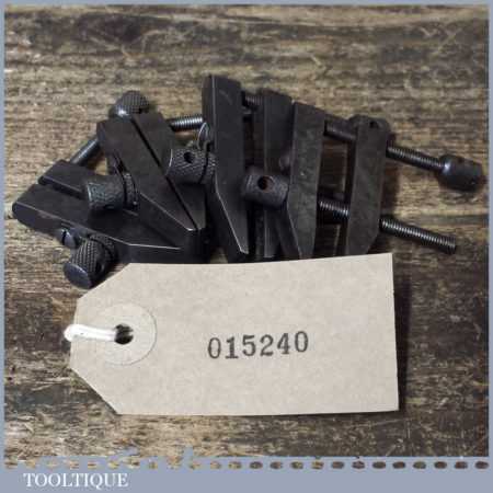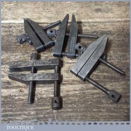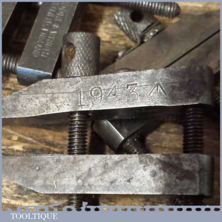 Set of 4 No: engineering tool maker’s clamps, three by Moore & Wright and one by Monument (stamped with crowsfoot broad arrow and dated 1943), in good used condition.