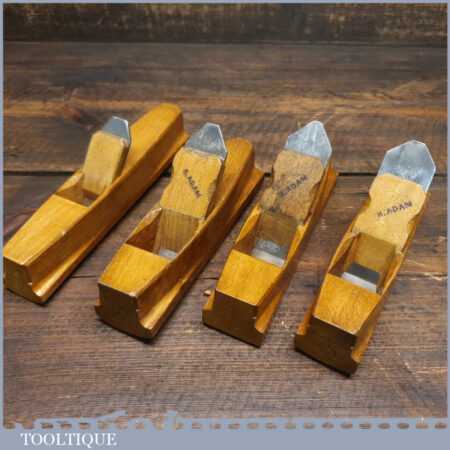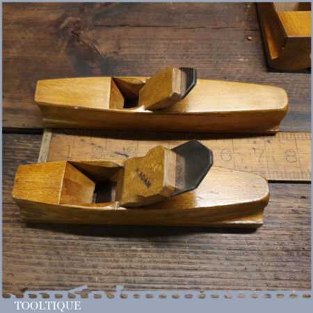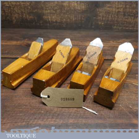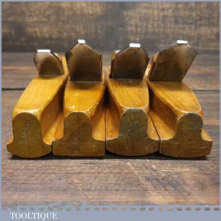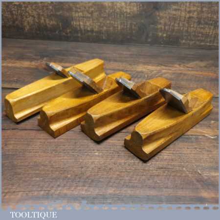 Set of 4 No: pattern maker’s beechwood block planes with various curves, all in excellent condition.