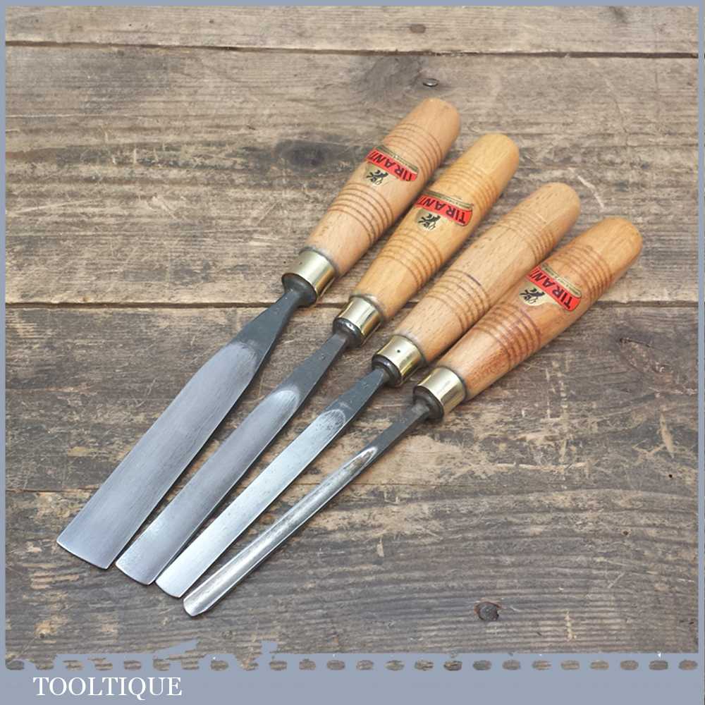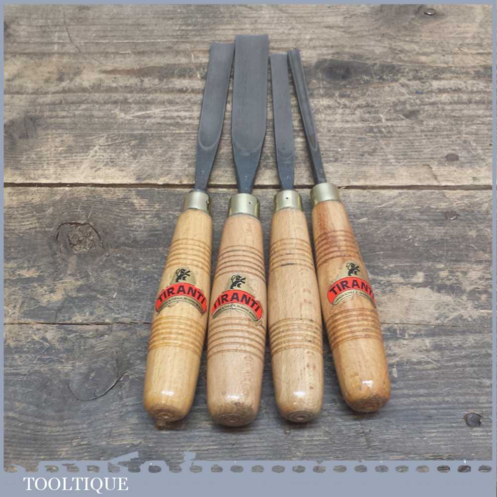 Set of 4 Tiranti wood carving gouge chisels in very good lightly used condition.