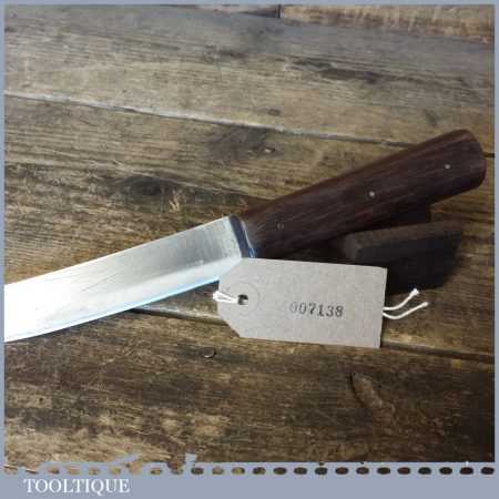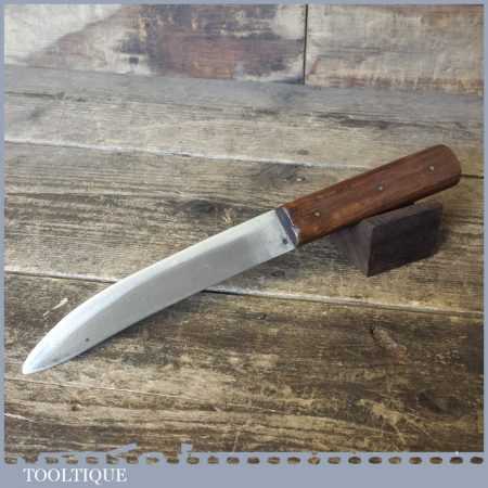 Sharp vintage gardeners knife with wooden grip handle in good used condition. Note: These knives are suitable for use with vegetables and plants and can be easily re-sharpened with the use of a fine sharpening stone to maintain a keen edge.