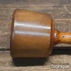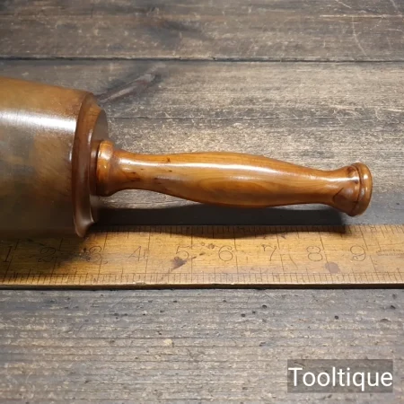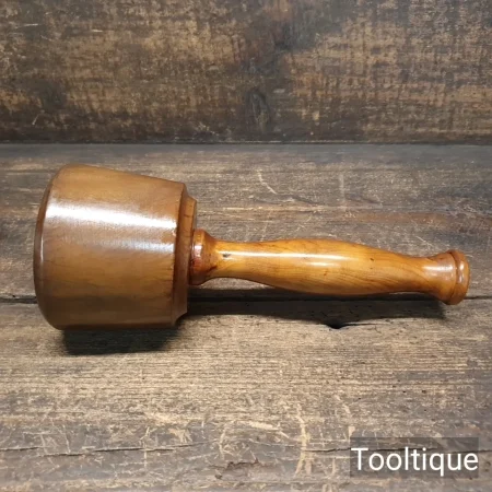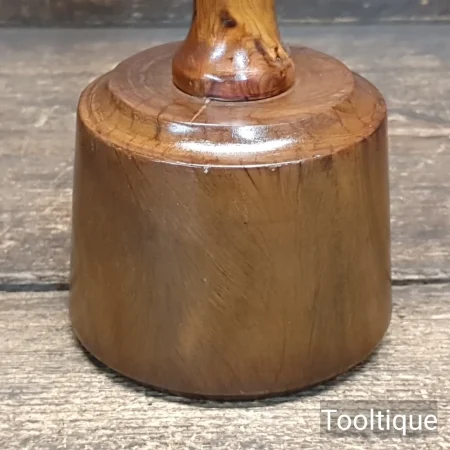 Small Bespoke hand wood-turned reclaimed old lignum vitae mallet with a Yew handle and ebony wedge. This mallet weighs approx 17 oz in gross weight. These mallets are made with a one-piece handle that continues through to the opposite end of the mallet head and feels very good in the hand. Note: These are made from old lignum crown bowls ensures they are well seasoned but more importantly comes from the region where the densest lignum could be found before being exhausted. The lesser dense Argentinean lignum took over the market after that and again this is all but gone as it takes so long to grow.